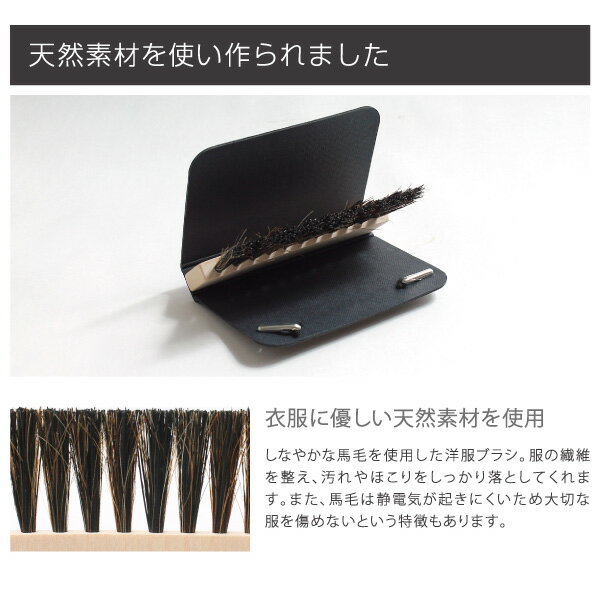 天然素材のブラシは合成繊維のブラシと違い静電気が起きにくいため、大切な服を傷めずほこりや汚れを払うことができます。