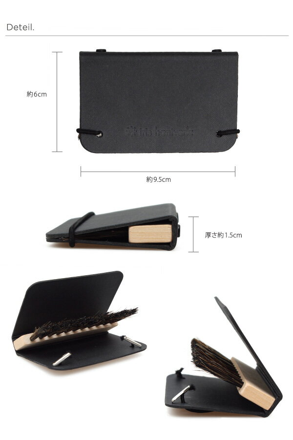 Spec 商品名 Iris Hantverk(イリス・ハントバーク)/ ポケット洋服ブラシ 素材 本体:ボール紙(厚紙) 毛部分:馬毛 サイズ 【収納時】横約9.5cm×縦約6cm×厚さ最大:約1.5cm 毛足長さ:約3cm 生産国 スウェーデン ご注意 ※こちらの商品はハンドメイドではございませんのでご了承ください。