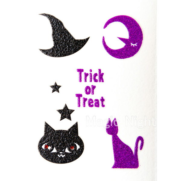 フェイスシール KIDSシール 魔法使いとネコ【ハロウィン 仮装 コスプレ メイク フェイスペイント フェイスタトゥ キッズ シール】送料一律600円 定形外発送可 1p94円 2p140円 マジックナイト RQ019