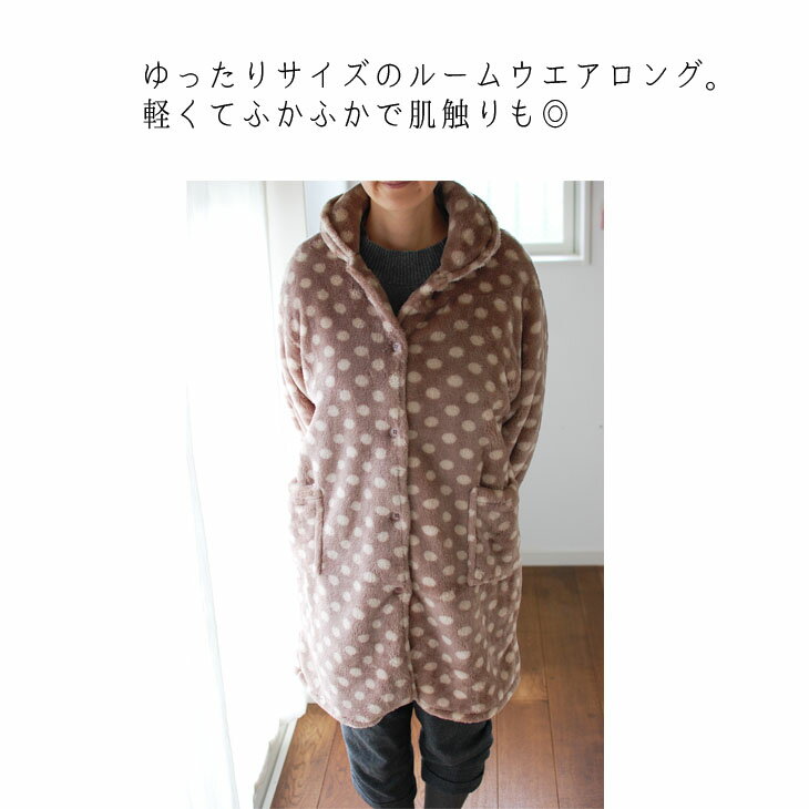 製品仕様 商品名 【71948】【71958】【71959】 ルボア ルームウエア ロング ボーダー ドット サイズ/寸法 FREE (バスト79〜94cm、身長154〜162cm) 素材/材質 ポリエステル100% 色 ボーダー ピンクドット ブラウンドット ネイビー ご注意事項 ●色落ち、色移りの恐れがございますので他の商品と一緒に洗濯しないでください。