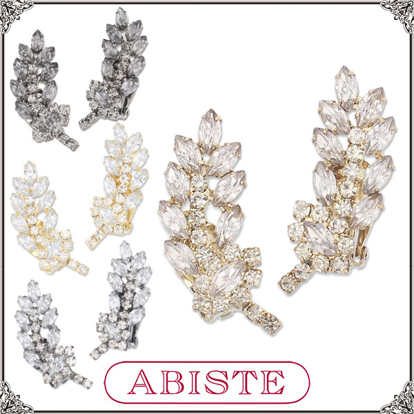 ABISTE(アビステ) リーフビジューイヤリング/シルバー、ゴールド、ブラウン、ブラック 3401327 レディース 女性 人気 上品 大人 かわいい おしゃれ アクセサリー ブランド 誕生日 ギフト プレゼント ラッピング無料