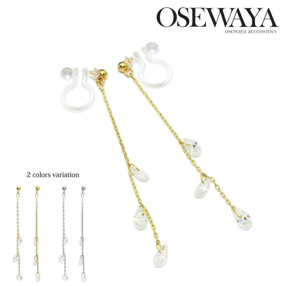 【送料無料】ノンホールピアス イヤリング キュービックジルコニア スリー ドロップ チェーン 樹脂タイプ | アクセサリー レディース 女性 大人 プレゼント ギフト 結婚式 誕生日 おしゃれ オシャレ かわいい 可愛い シンプル 20代 30代 40代 50代